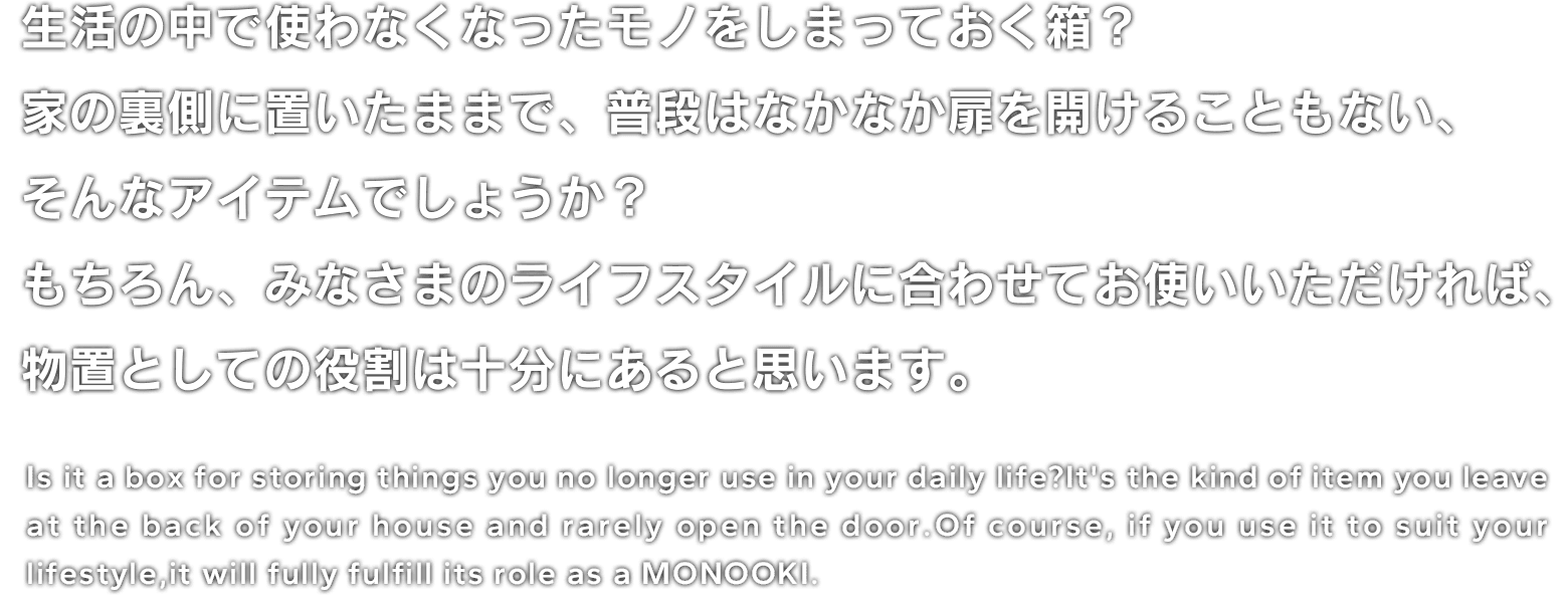 他にはないデザインであること。丈夫で、長く使い続けられる物置であること。