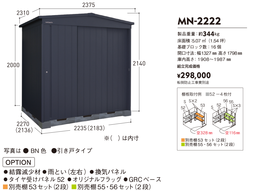 「製品重量は物置の頑丈さの証明となる」との考えから、製品品番の下に製品重量を必ず記載しております。マツモト物置が最も重量のある物置であることがわかると思います。