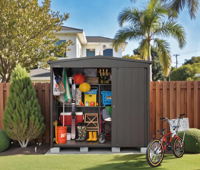 当然、製品重量は販売価格にも大きく影響しますが、コストを抑えて重量のない物置を造る考えは当社にはございません。台風や高温多湿の日本の自然環境下に合わせ、デザインだけではなく、丈夫で頑丈な物置を造ることを優先しております。