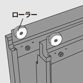 滑りの良いベアリング入りローラーを採用。扉の下部には、ホコリや砂・砂利が溜まりにくい設定。