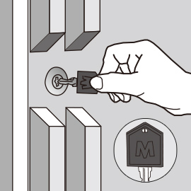 錠前のシンプルデザインを生かす為に扉の上レールには鍵をかけなくても強風で扉が自然に開かないように扉の落とし込み機能を設定。