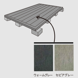 床の耐荷重は1830N/㎡(約183kgf/㎡)床パネルは樹脂のウッドデッキ仕様。