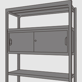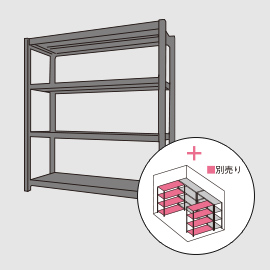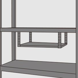 耐荷重1段200kg。棚板ピッチ25mm 重量:35kg。シェルフラックの配置は自由に設定可能。