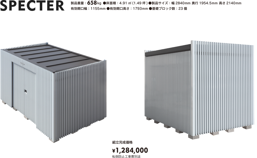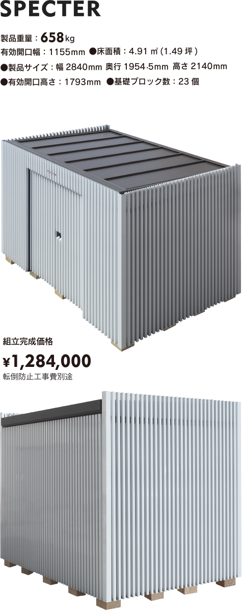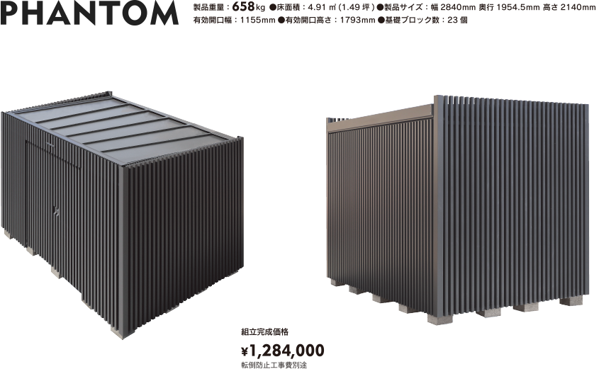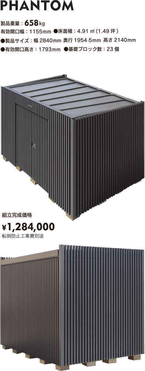 ※PHANTOM、SPECTERともに製品重量が600kgを超えている為、設置場所はコンクリート土間のみとなります。設置予定場所が土・砂利の場合は必ずコンクリート土間工事(別途費用)をして下さい。※価格は全て税抜き価格です