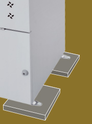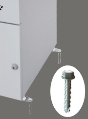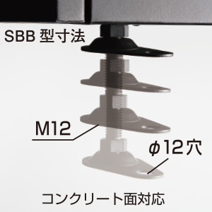 アンカー止めも可能 - 上下約55㎜調節可能なアジャスターを標準装備。4ヶ所ともアンカー止めが可能です。アジャスターの高さ調節範囲は約35〜90㎜キャスターも付けられます。(M12サイズ/市販品利用)