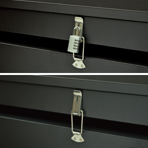 いたずら防止! - ナンバー錠や南京錠(市販品)が取付けられます。夜間や長期不在時のいたずら防止に役に立ちます。
