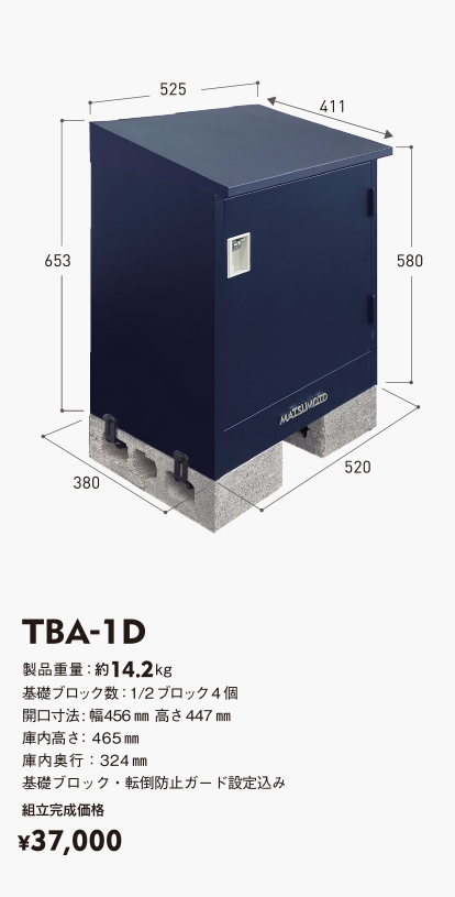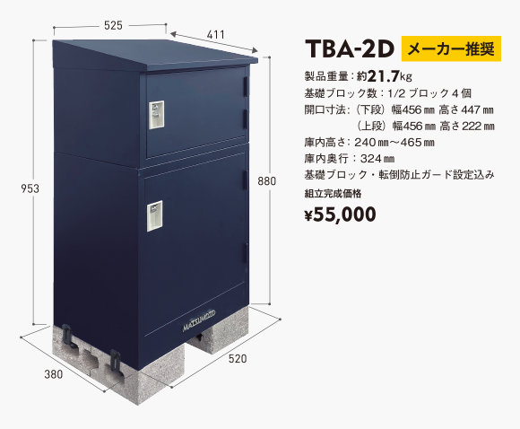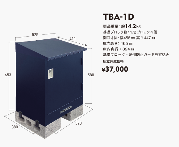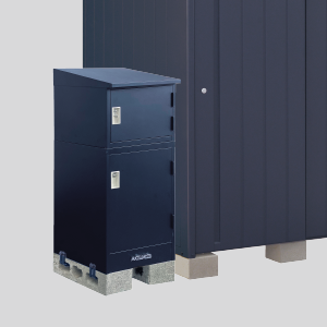 - 安全面を考慮して転倒防止設置を標準仕様としております。基礎ブロックに転倒防止ガードを通してボルトで止めます。