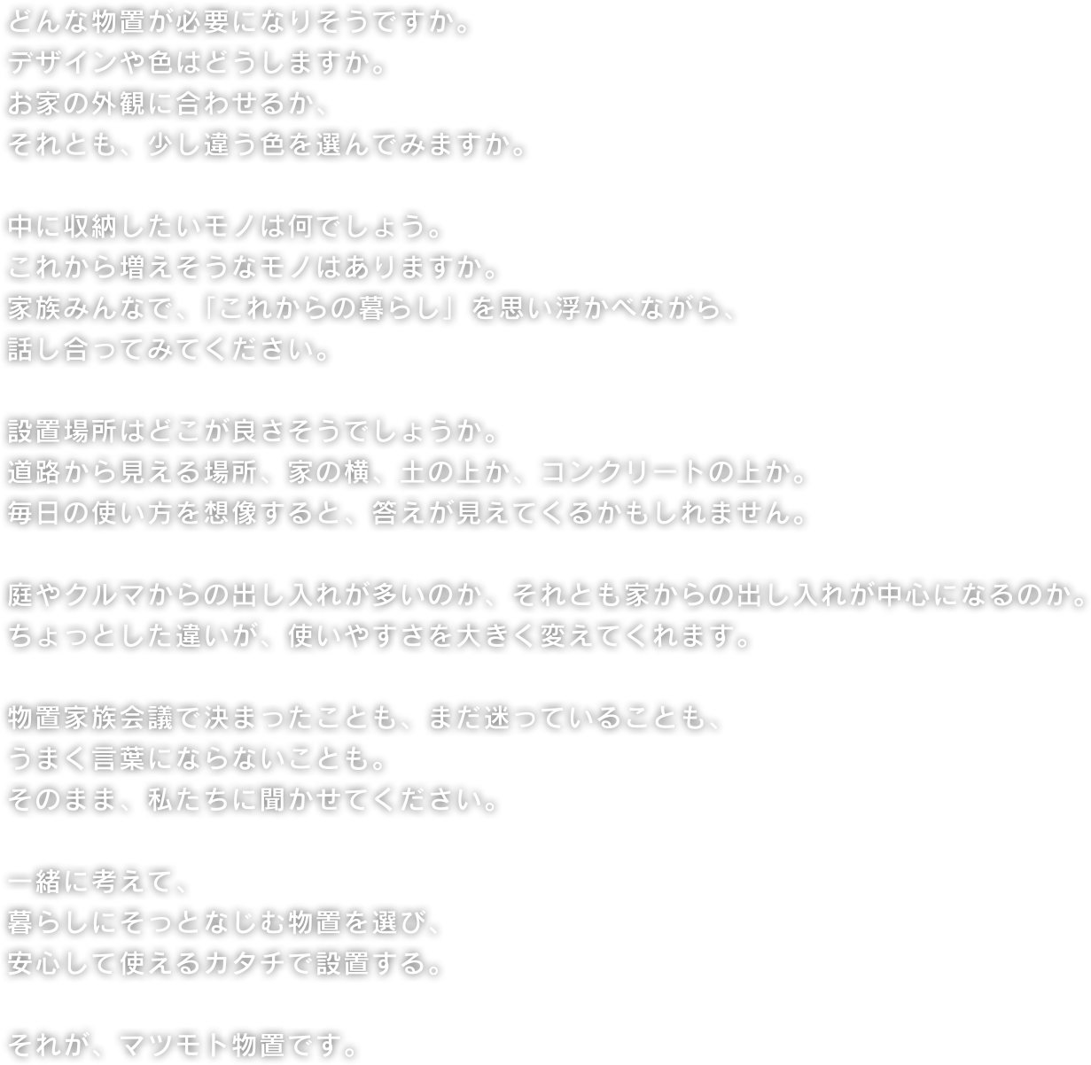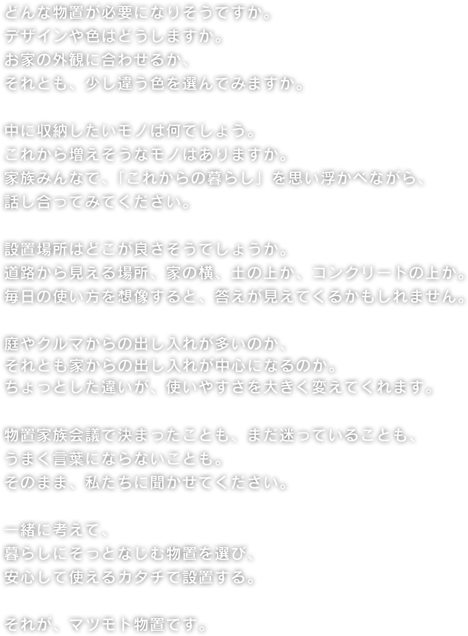シンプルなデザインである事、ムダな装飾はいらない。マツモト物置が提案する新たな宅配ボックス。