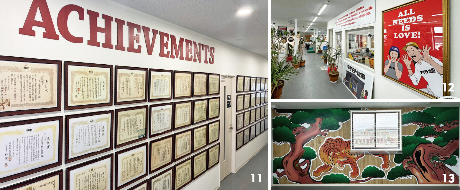 創業から現在までの会社の歴史とマツモト物置の個性と感性が強く表現されたオフィスとなっている。