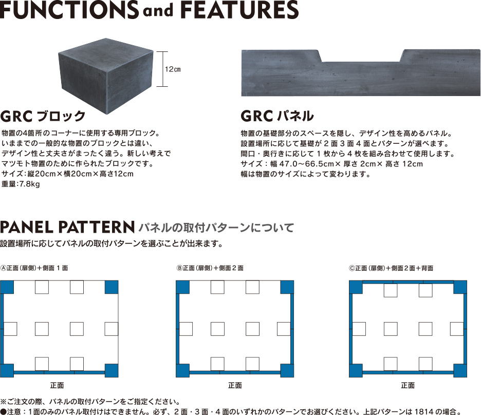 - GRCベースは設置場所がコンクリート土間の場合のみ取り付けが可能となります。設置場所が土・砂利などの場合は設置場所をコンクリート土間にする必要があります。