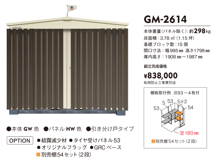 - マツモト物置のさんかく屋根の上に取り付け可能です。フラッグはホワイトのみ。スタンドはPG・GW・BN色の3カラー。物置本体カラーと合わせてください。※強風時は外してください。