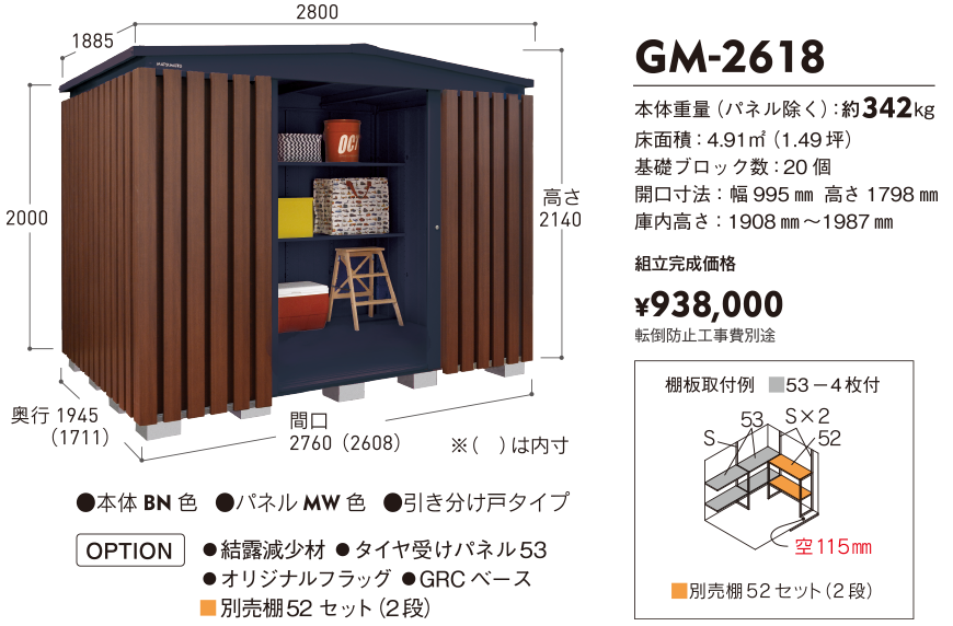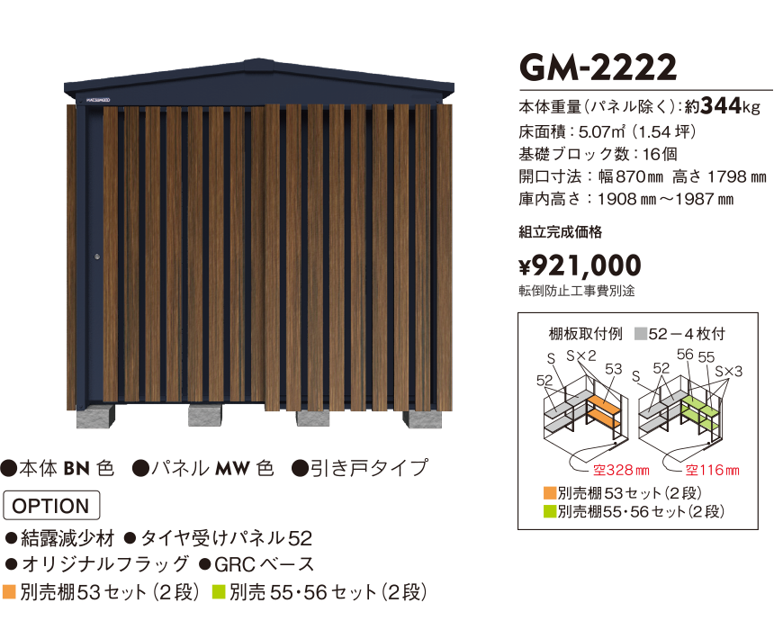 「製品重量は物置の頑丈さの証明となる」との考えから、製品品番の下に製品重量を必ず記載しております。マツモト物置が最も重量のある物置であることがわかると思います。