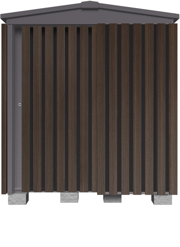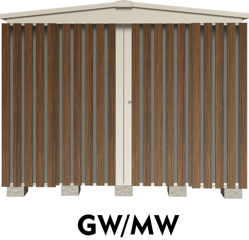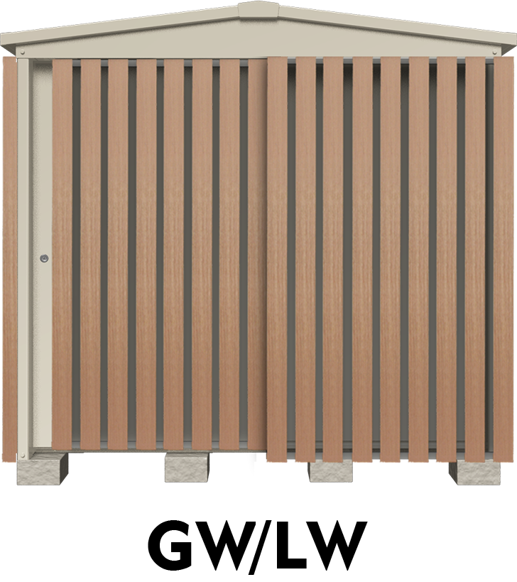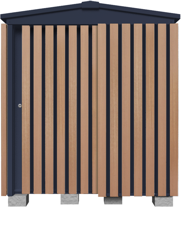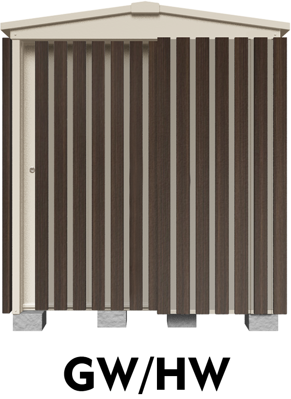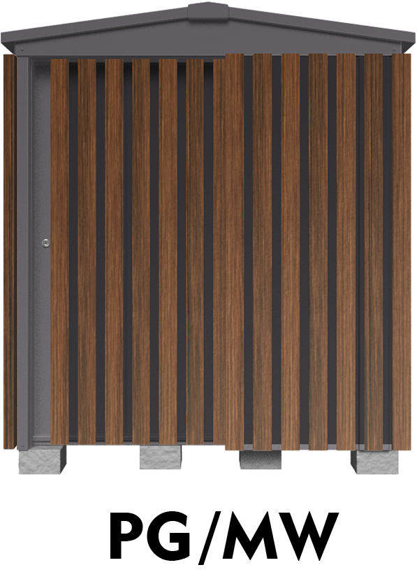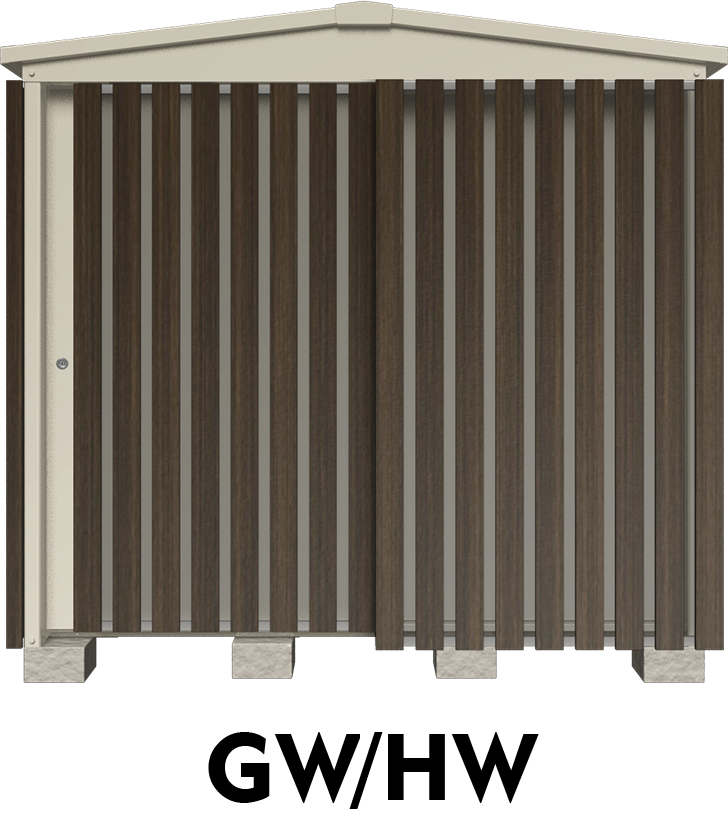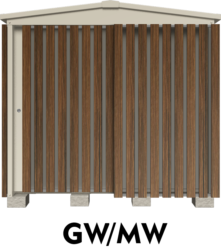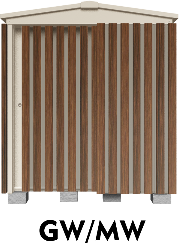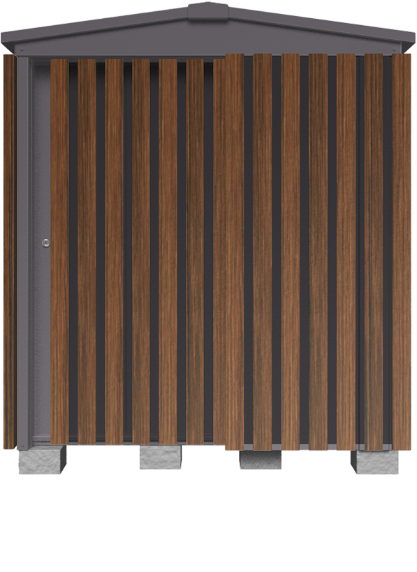 シンプルデザインに縦格子を合わせた次世代型物置GMは、デザインが洗練された住宅や