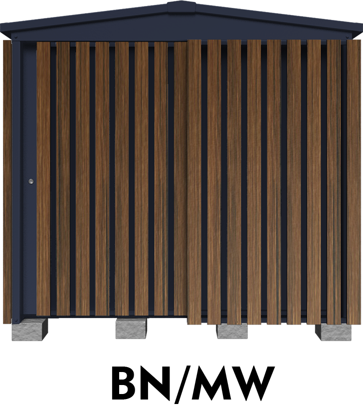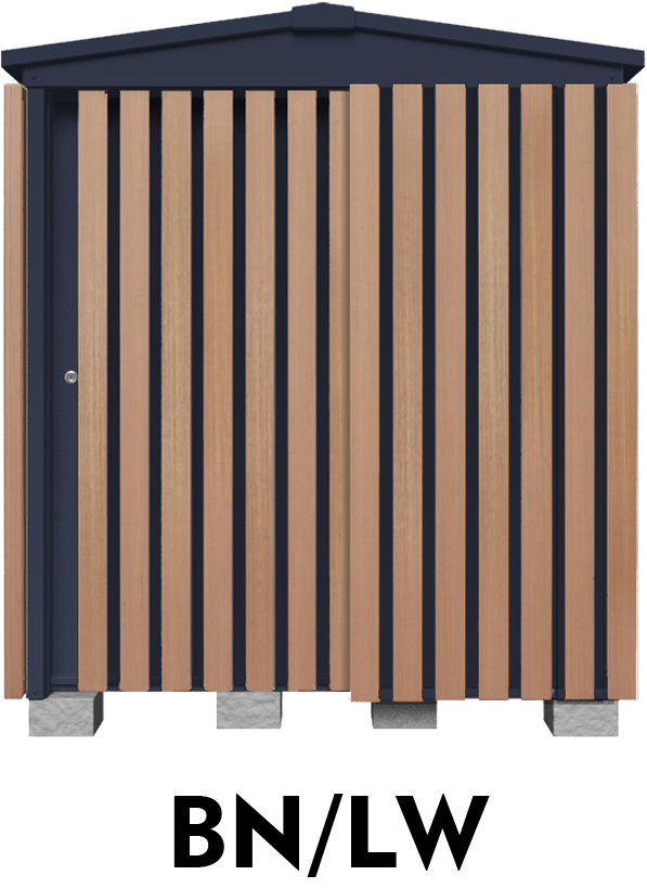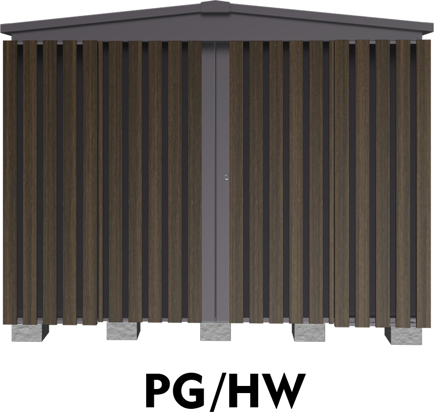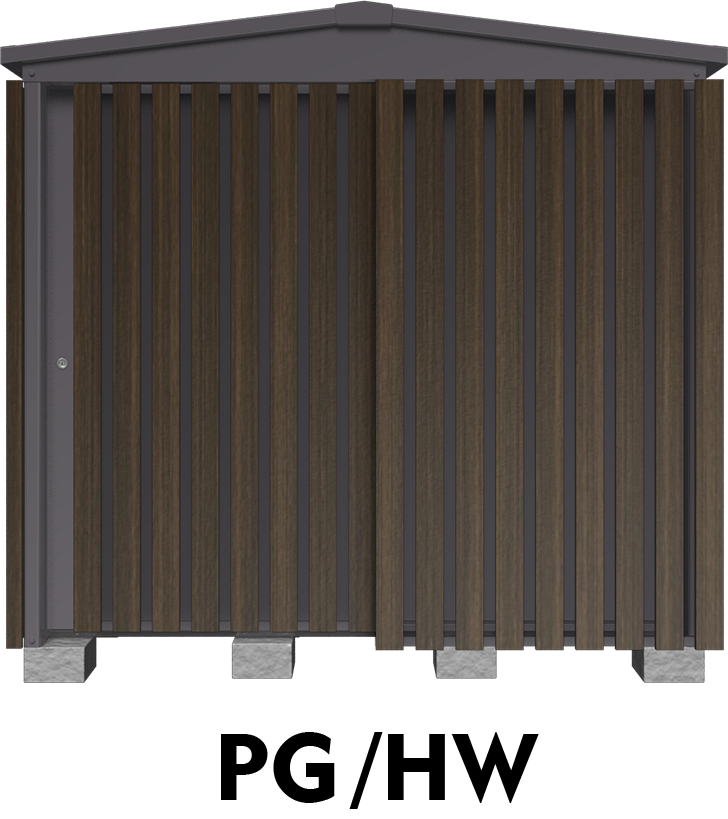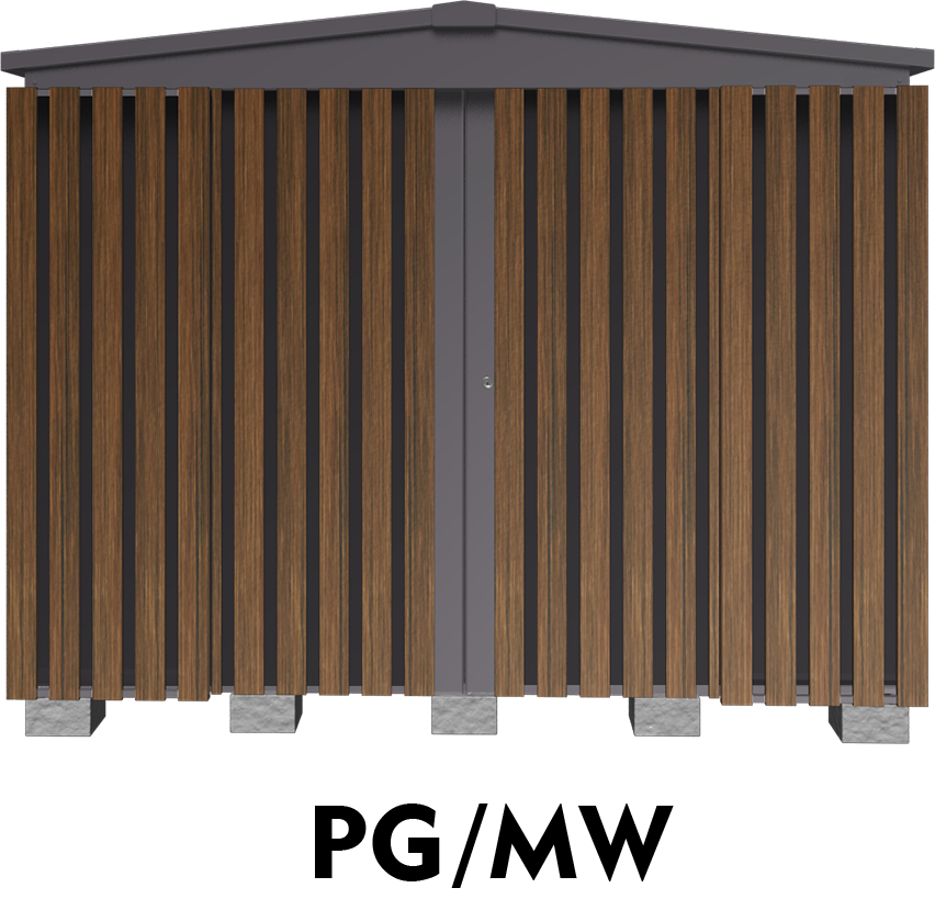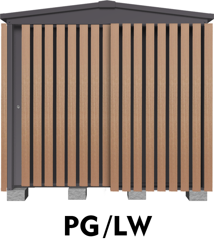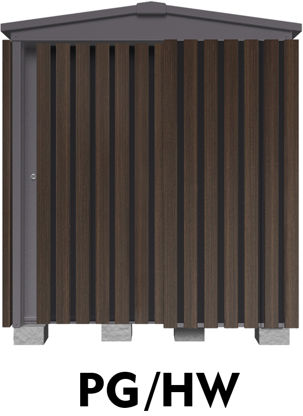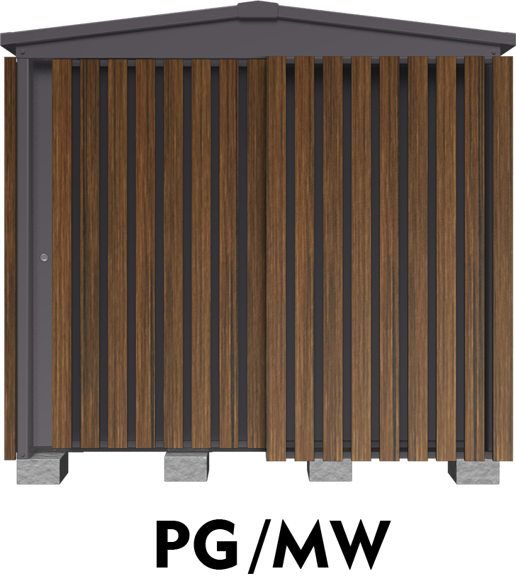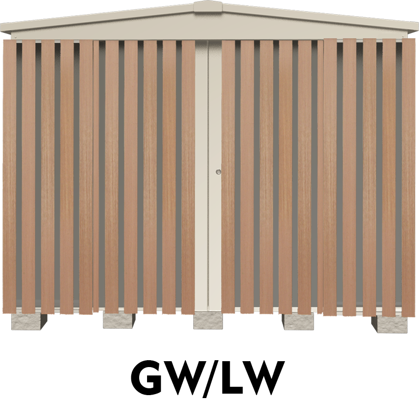 シンプルデザインに縦格子を合わせた次世代型物置GMは、デザインが洗練された住宅や