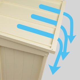 - 屋根が切妻になっているので、雨水が両サイドに自然に流れます。