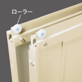 - 滑りの良いベアリング入りローラーを採用しました。扉の下部には、ホコリや砂・砂利が溜まりにくい設定です。