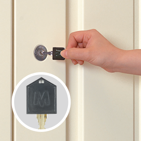 - 錠前のシンプルデザインを生かす為に扉の上レールには鍵をかけなくても強風で扉が自然に開かないように扉の落とし込み機能を設定しています。