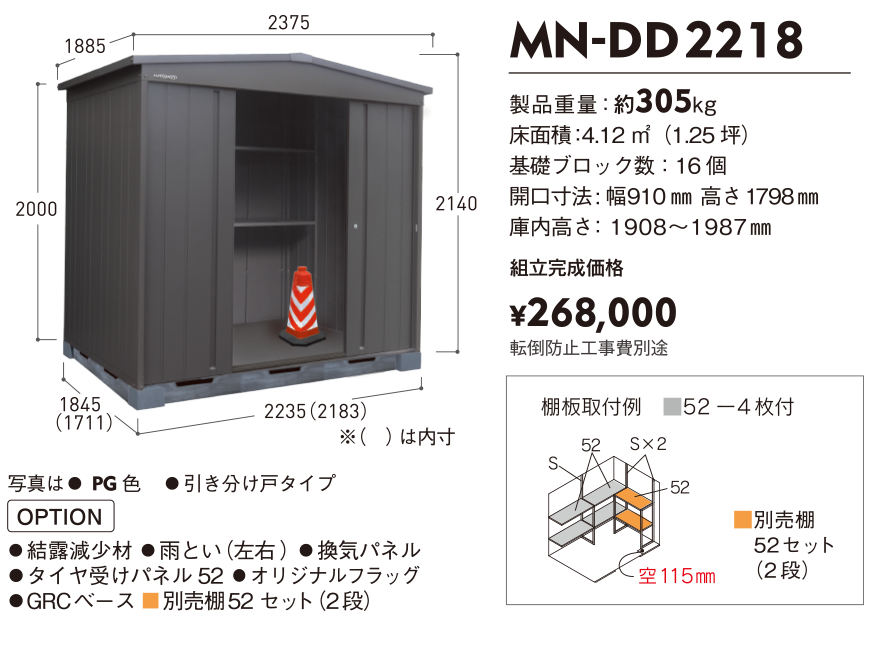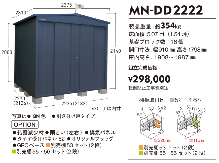 「製品重量は物置の頑丈さの証明となる」との考えから、製品品番の下に製品重量を必ず記載しております。マツモト物置が最も重量のある物置であることがわかると思います。