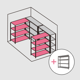 標準装備のシェルフラックを追加する場合、左右に1台ずつ配置可能。
