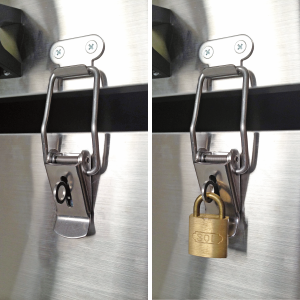 いたずら防止! - 錠(市販品)が取付けられます。夜間のいたずら防止にも役に立ちます。
